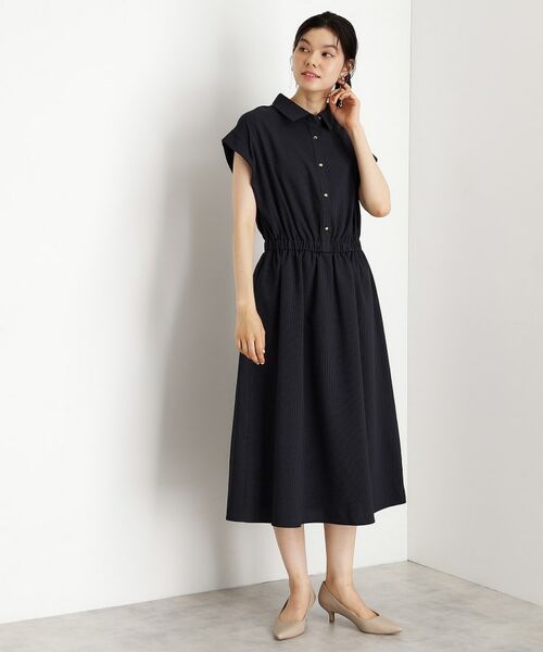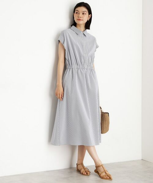 清涼感のあるサッカー生地を使用したこのワンピースは、ウエストのゴム仕様によりフィット&フレアなシルエットを実現。
