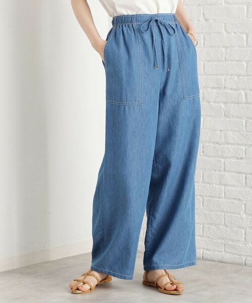 テンセル素材でデニムのイージーワイドパンツで、洗練された配色ステッチが清涼感を演出するデザインが魅力です。