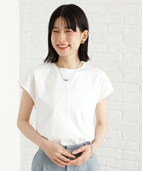 シルケットの美しいカットソーは、フレンチ袖の上品なデザインを採用し、シンプルながらもモード感と洗練された印象です。
