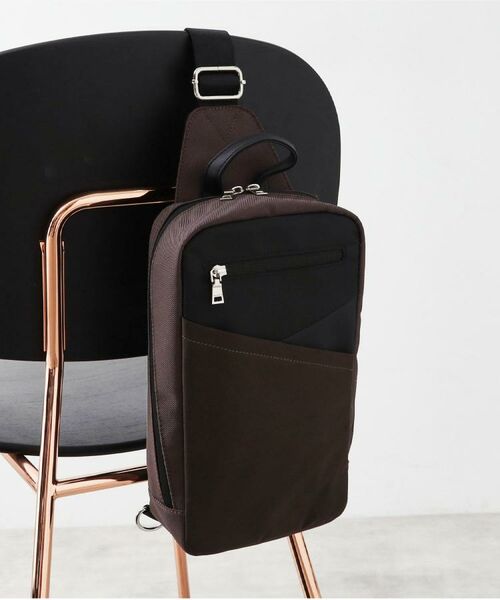 ・ポリエステル×合皮の異素材切替で、シンプルながらも存在感のあるデザイン。大人のカジュアルスタイルにフィット。