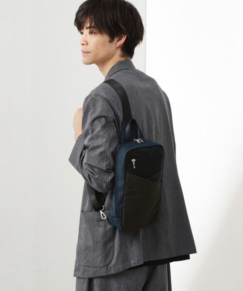 異素材の切り替えが映える。スマートに持ち歩ける切替ボディバッグ