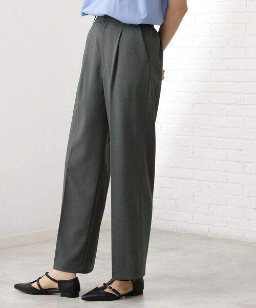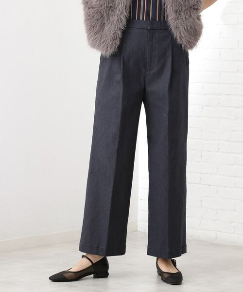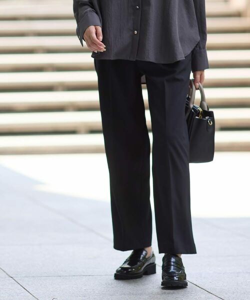 ストレートワイドのシルエットがきれいなパンツで、センタープレスですっきり。