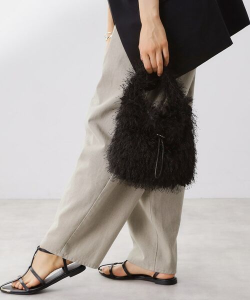 ボアとフリンジがミックスした特徴的な生地を使用した巾着バッグ