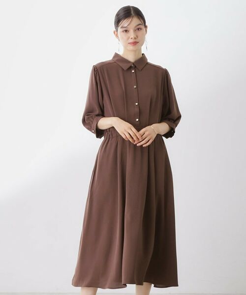 機能素材を使用したシャツ衿タイプのクラシカルワンピースは、シンプルでありながら上品なデザインが魅力です。