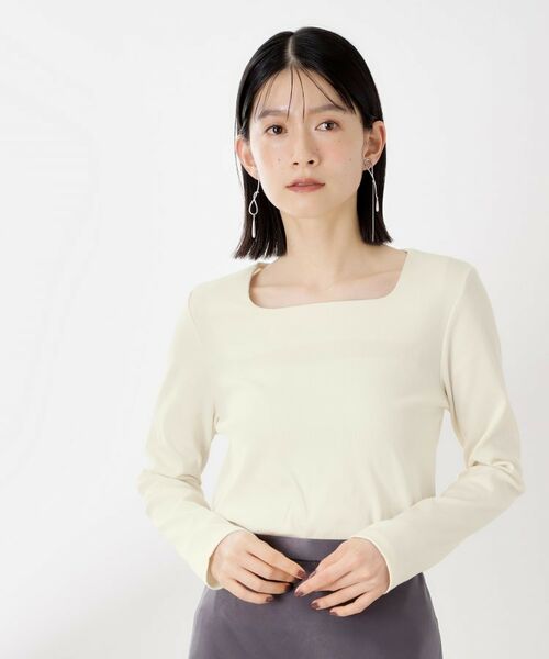 テレコ素材を使用したカットソーは、スクエアネックがすっきりとした印象を与え、キレイ目な仕立てとなっています。