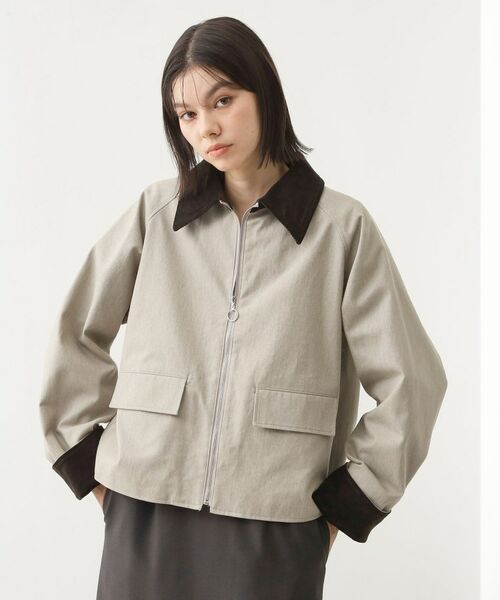 衿と袖口はコーデュロイ素材に切り替えられており、素材の違いがアクセントとなって個性的な印象をプラス。