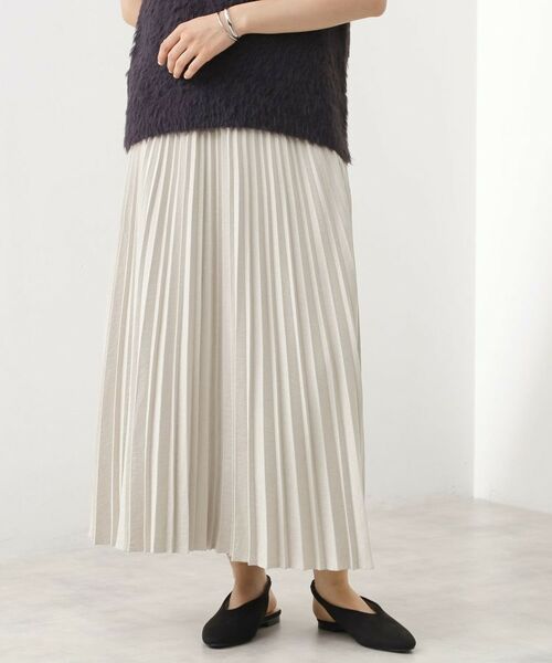 マイクロスエードを使用したプリーツスカートは、柔らかな素材感が特徴で、上品なドレープと動きやすさを兼ね備えた逸品です。