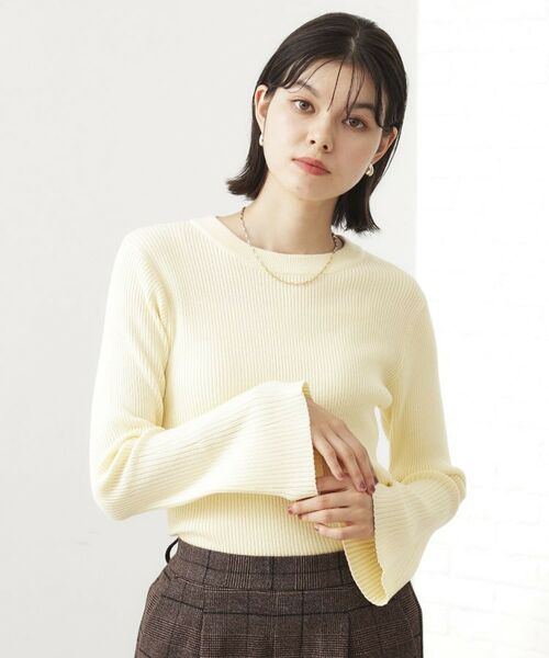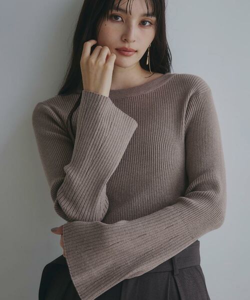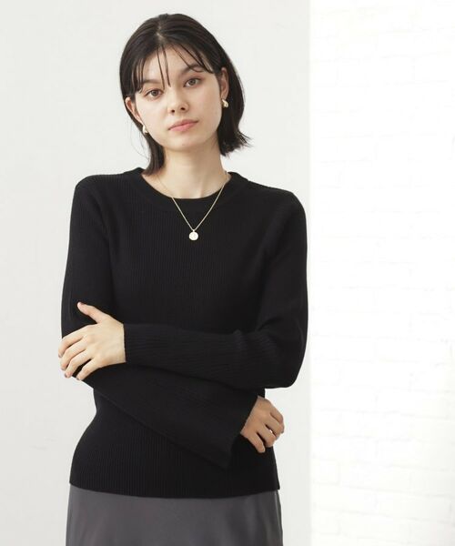 静電防止糸を使用したこのニットは、リブ編みで仕上げたフレア袖がアクセントとなるデザインです。