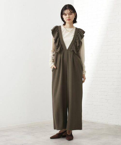 シンプルなオールインワンは、アウターやレイヤードアイテムとしても着用可能。