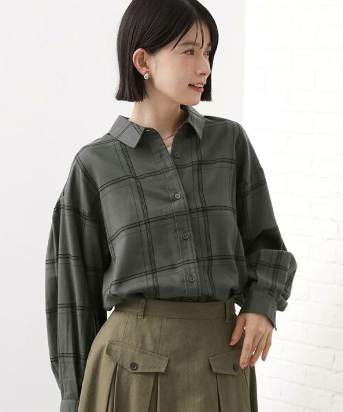 モール糸を使用してチェック柄に仕上げたこのシャツは、同色系のチェックパターンが無地のような落ち着いた印象を与え、合わせやすさが魅力の1枚です。