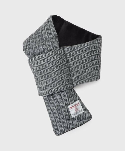 ハリスツイードのクラシックヘリンボンで、ON・OFFどちらも自在に使える中綿マフラー。