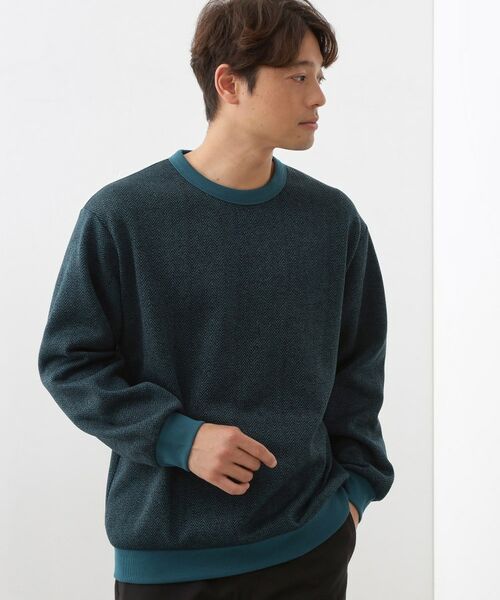 柔らかなフリース素材にヘリンボーン柄をプリントした、上品さとあたたかみを兼ね備えたトップス。