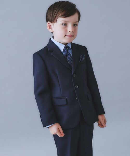 13(130cm):ジャケット着丈51cm ジャケットB74cm ジャケット袖丈45cm ジャケット肩幅30cm シャツ着丈54cm シャツB78cm シャツ袖丈45cm シャツ肩幅34cm パンツW52~58cm パンツH66cm パンツ股下21cm パンツ前股上22cm パンツ渡り幅21cm パンツ裾幅17cm 付属ネクタイ全長22.5~32.5cm モチーフH25.5cm モチーフW6cm