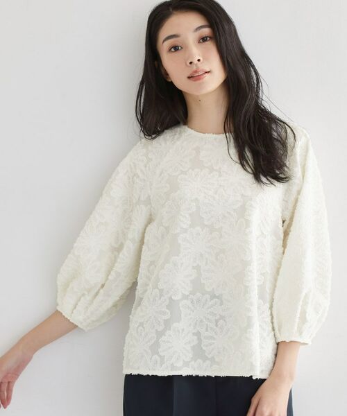 花柄のジャカード生地を使用したこのブラウスは、1枚で映える存在感が魅力です。