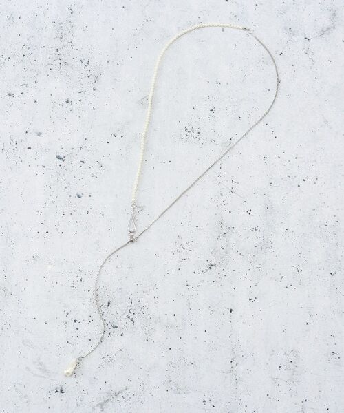 華奢なパール調とチェーンを組み合わせたY字のネックレス。
