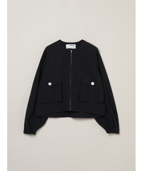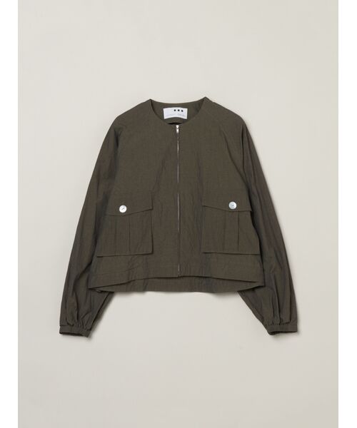 ジャケットはドローストリングで裾を絞れる旬のアイテム。短めの着丈も合わせやすい。同素材のパンツと合わせればセットアップに。さらに同素材にてトップスの展開もあるので3ピースで着こなすことも可能です。