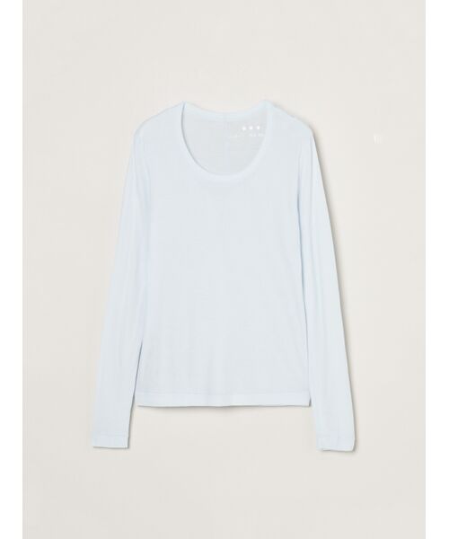 シアー感のあるコットン素材を使用したジェシカ型スクープネックTシャツ。