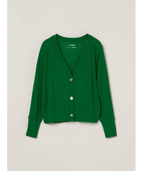 ソフトなシースルー素材。ニットのように柔らかなカットソー地のカーディガンです。小さく畳めて持ち運びも便利なので冷房対策にも。インナー次第でロングスパン使用できます。