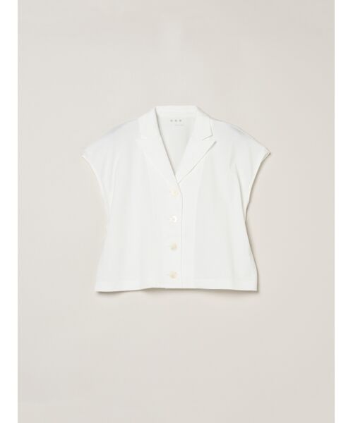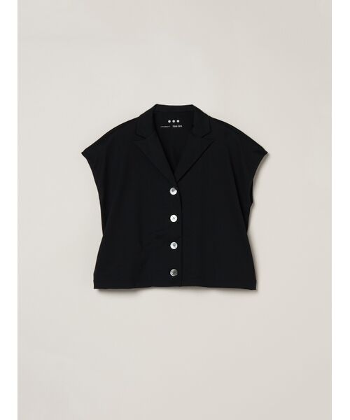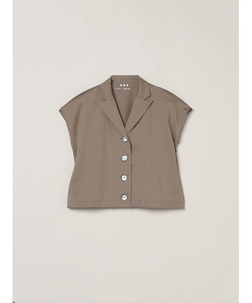 ほんのりとしたツヤが上品な印象を与える、シルキーなコットンジャージー素材を使用。しっかりとしたハリ感がありながら、肌あたりはやわらかく、リラックス感のある着心地に仕上げました。ミニマルなデザインの中に、上質感が感じられる一着。きちんと感とラフさをバランスよく兼ね備えたピースです。ジレとしても、ショートスリーブジャケットとしても着用可能。フロントを開ければ羽織りにもなり、ノースリーブの上に羽織っても、秋には長袖をインナーにするコーディネートもおすすめです。