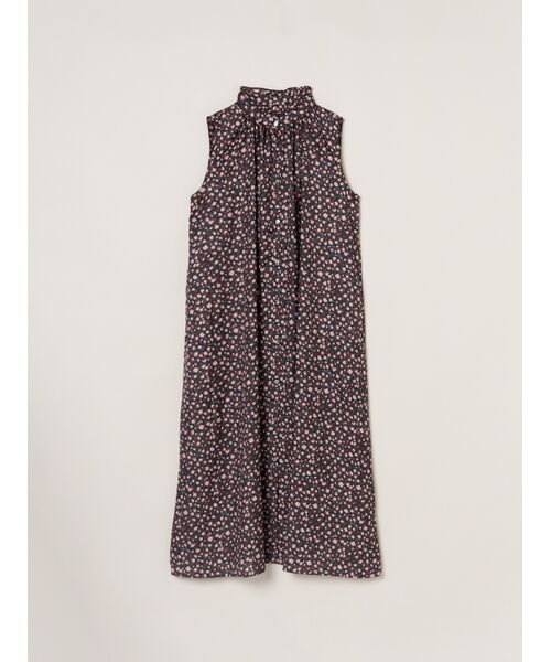 同型でプリントと無地を展開しています。無地はコクのあるボルドー、ソフトなピンク、リュクスなブラックなど、秋の入口にぴったりなカラー。フリルのネックがポイントとなり、すっきりとしたシルエットながらにレディライクな印象に。甘さを抑えたい場合にはデニムなどのパンツを合わせるコーディネートもおすすめです。