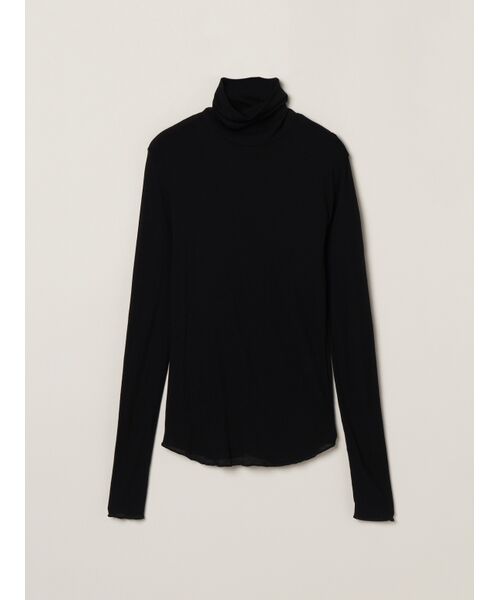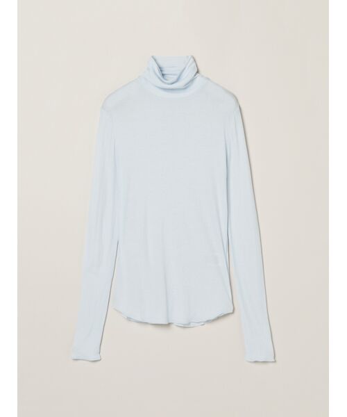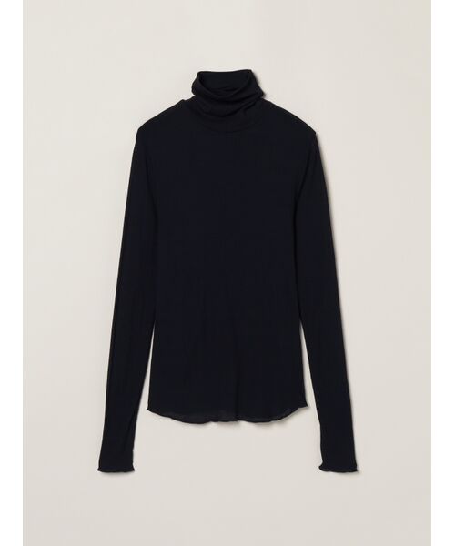 人気のソフトシースルーコットン素材のタートルネックバージョン。通常シアージャージーだとポリエステル等の硬めの素材が多いなか、乾燥しがちな時期にも嬉しい優しい肌触りが特徴です。特にちくちく感を感じやすいネックも生地を2重に重ねたふんわり仕立てで刺激がかかりづらくなっています。暗い色が多くなる秋冬は、ネックで差し色を見せてコーディネートに華やかさをオン。手の甲にかかる長めのロングスリーブなのでニットなどからちらりと見せるのもおすすめです。
