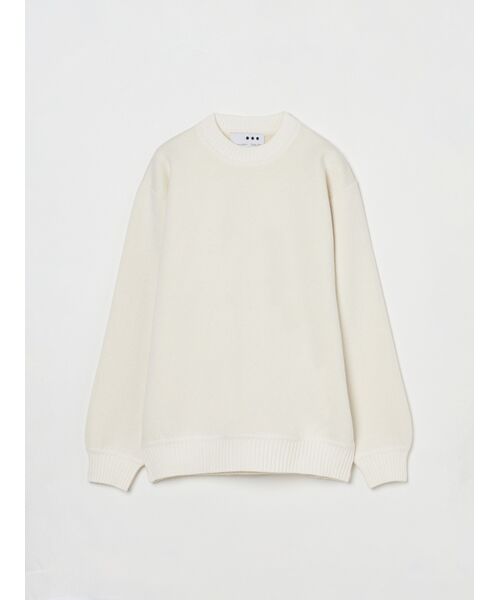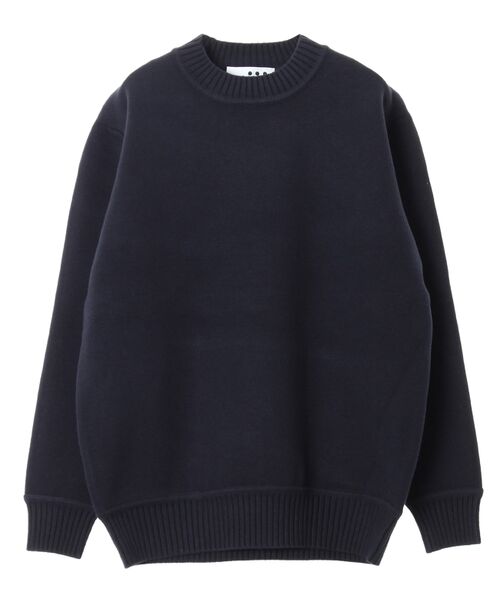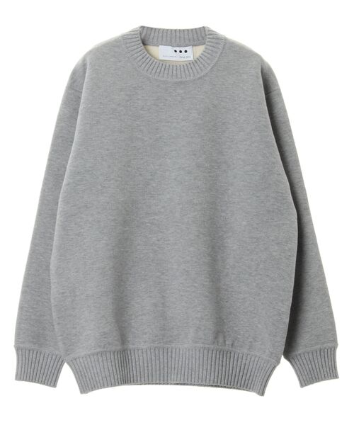 表と裏で異なる生地を接結させているスウェット。カシミヤ混のため暖かみのある風合いでアウターライクに着ることができます。