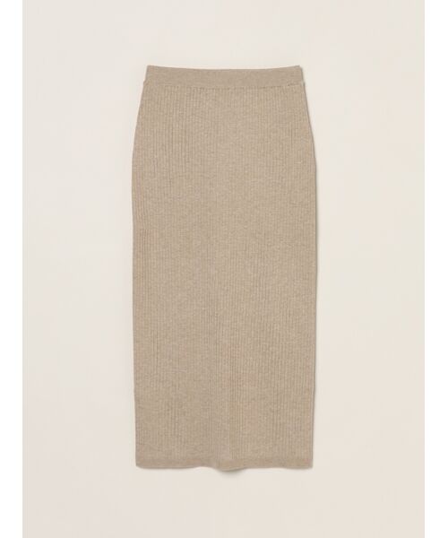中肉のリブ編地のペンシルスカート。タイトでもボディラインを拾いにくく、すっきりと着用可能です。シンプルなのでボリュームの出るトップスとも好相性。同型でラメのタイプもございます。
