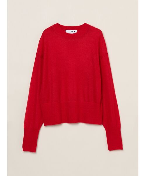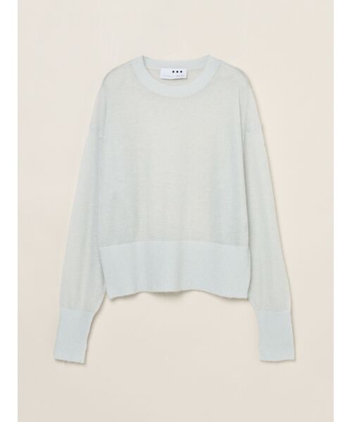 繊細なキッドモヘヤを使用したシアーニットプルオーバー。ほのかに透けるのでグラフィックTシャツにオンするのもおすすめ。非常に軽く、ショール感覚で肩掛けも可能です。ルーズ過ぎず、タイト過ぎないややゆとりのあるサイズ感で何にでも合わせやすく着用しやすいデザインです。
