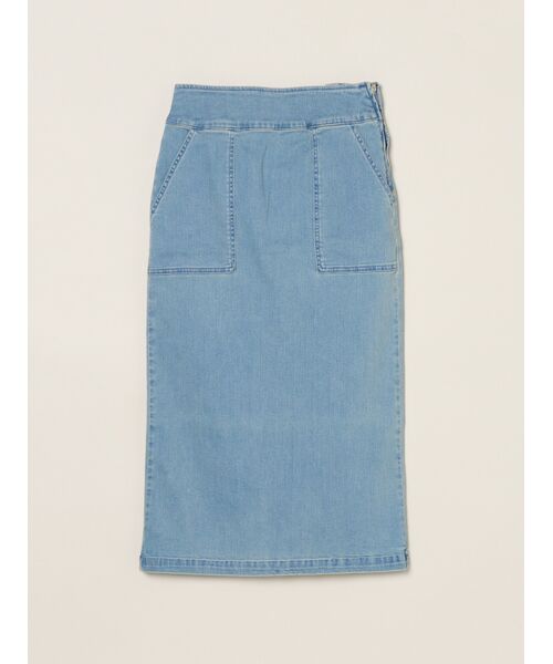 ストレッチデニムを使用したストレートシルエットのミディスカート。