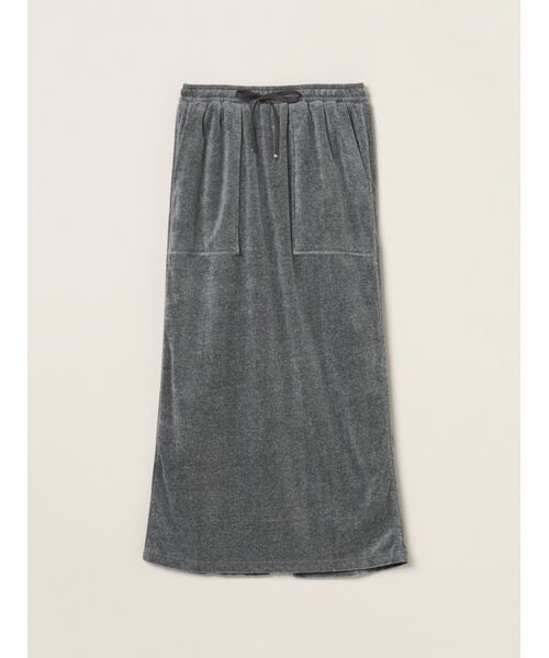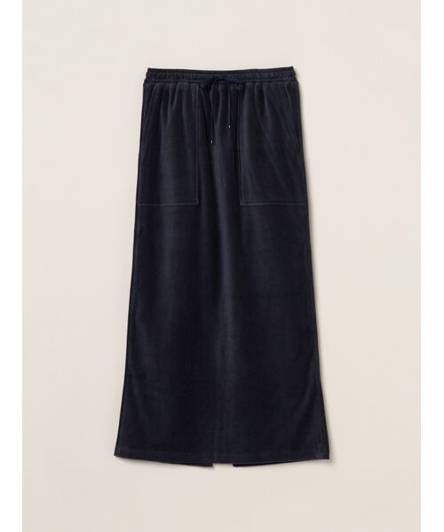 ライトでエアリーなコットンベースのベロア素材。ベロア糸を極限まで細く仕上げ、繊細で柔らかな光沢感のあるコットンベロア素材を使用。裏側にポリエステルを用いることで、伸縮性が生まれ、快適な動きやすさも特徴です。長すぎないミディ丈のストレートシルエットはトップスを選ばずどなたにも着こなしやすいデザインです。同素材のブルゾンも展開。手洗い可