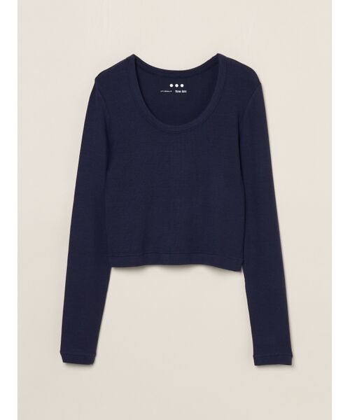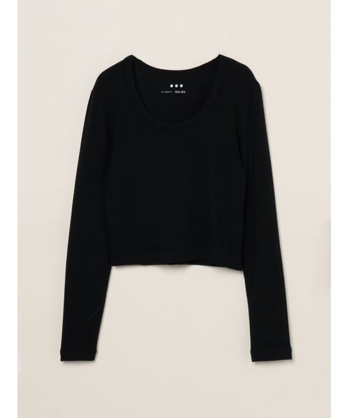 もっちりと肌に吸い付くような定番レーヨンリブニットジャージーからショート丈のジェシカネックが新登場。抜け感の出るスクープネックはカーディガンやジャケットのインにも最適です。丈はおへそが隠れるくらいのクロップド丈で、ハイウエストのボトムスならちょうど肌が見えないくらいの丈感。インしないでもバランスが取りやすく、ベルトを見せるスタイリングもおすすめ。長めの袖とのバランスが今らしい一枚。