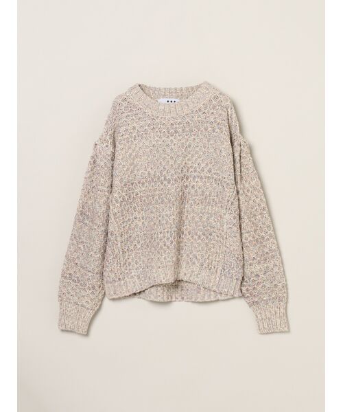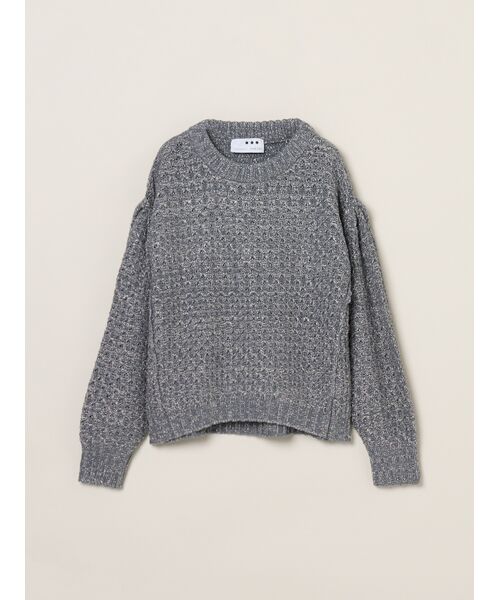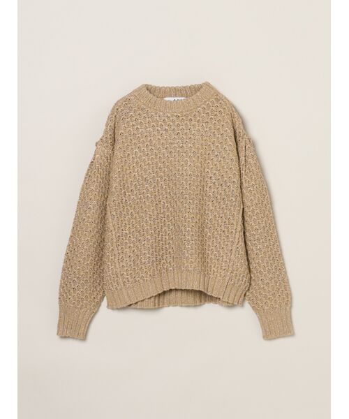 キラキラと光を反射するラメニットカーディガン。ざっくりローゲージに編まれたニットに太めのラメ糸がポイント。デニムとカットソーのコーディネートに1枚合わせるだけで着こなしが華やぎます。肩山にタックが施され、立体感とモード感をプラス。繊細さを感じる編み柄も特徴です。同素材のカーディガンも展開。