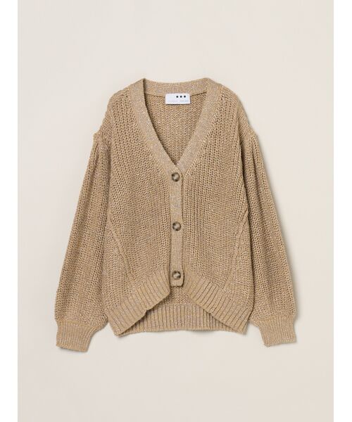 キラキラと光を反射するラメニットカーディガン。ざっくりローゲージに編まれたニットに太めのラメ糸がポイント。デニムとカットソーのコーディネートに1枚合わせるだけで着こなしが華やぎます。肩山にタックが施され、立体感とモード感をプラス。同素材のプルオーバーも展開。