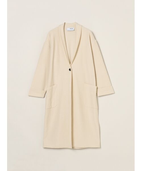 しなやかさを感じるウール100%のフェルトニット。薄手のメルトンのような布帛ライクのニット素材です。ライトアウターとしても着用でき、ちくちくしづらいので半袖やノースリーブの上からも着用可能。グラフィックTシャツなどと合わせて、残暑時期から春先まで活躍。ロングでも軽い着心地も特徴です。