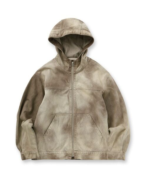 デニムをスプレーブリーチしたのち、再度染色し、さらにウォッシュ加工を施すことでヴィンテージ感のある色落ちを再現しました。