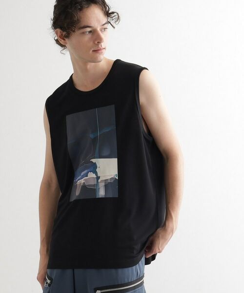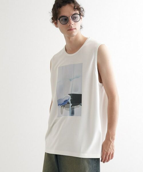 涼し気に水を感じさせるグラフィックが特徴のノースリブカットソー。