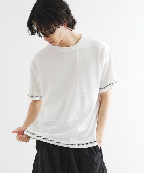 生地の表裏を使った、パッチワークっぽいデザインのカットソー。