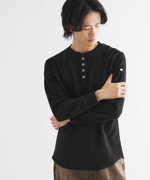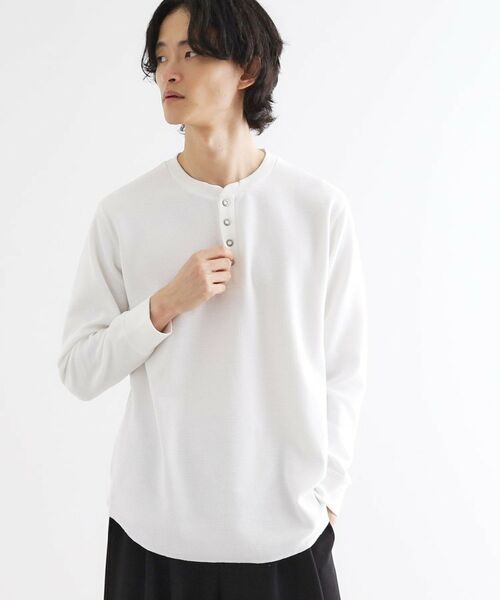 薄すぎるワッフルカットソーは、ヘビー裏毛のパーカーやアウターと合わせると頼りない印象になりますが、こちらは適度に厚みを持たせたミドルウェイトワッフルを使用していますので、一枚でもインナーに使用いただいてもバランスが非常によいのでおすすめです。