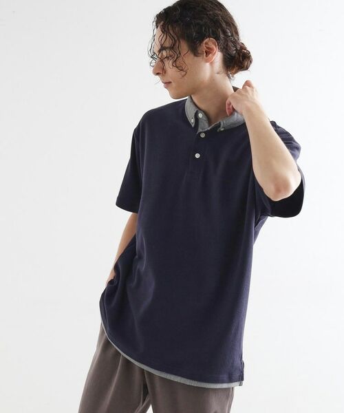 レイヤード鹿の子ポロシャツ