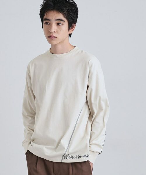 ランダムステッチデザインが特徴のロングスリーブTシャツ。
