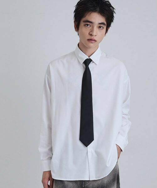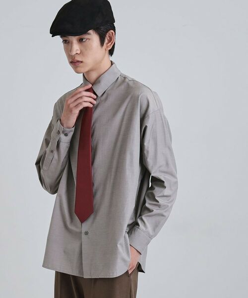 無地シャツとしても、ネクタイを締めてもキレイめで大人っぽい印象を与えるシャツ。