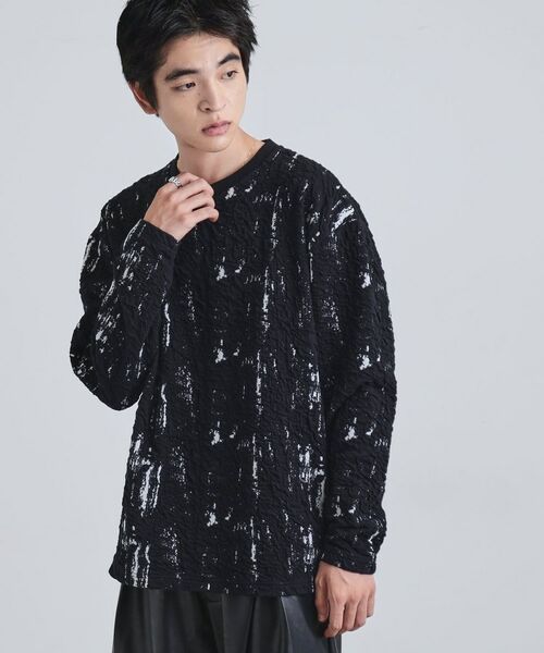 アブストラクトジャカードを使用したクルーネックプルオーバーカットソー。