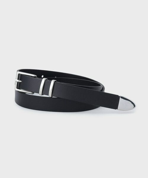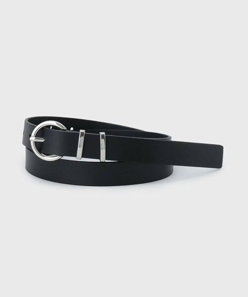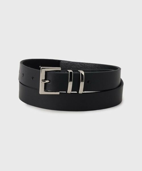 カチッとしたスクエアとラウンドのバックルがクールなアクセントになったベルト。