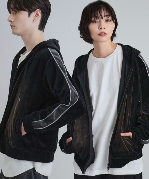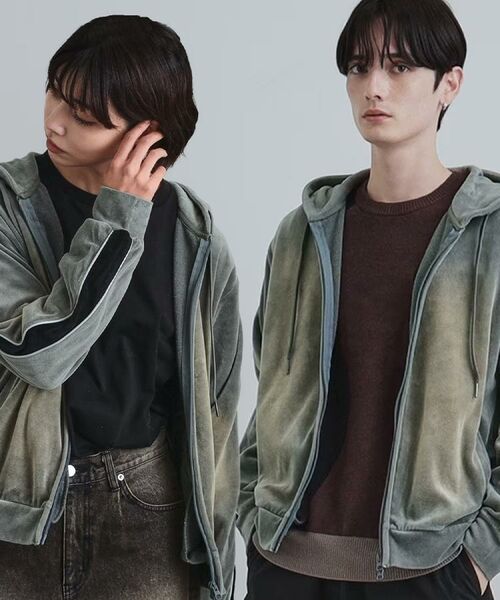 ヴィンテージの雰囲気漂う加工を施したベロアパーカ。