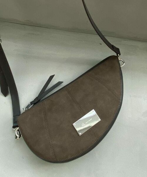 トレンドのアシンメトリーなハーフムーンショルダーバッグ。