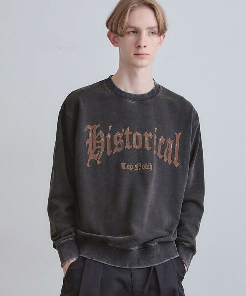 ミドルウェイトの裏毛を使用したビンテージ加工プリントスウェット。