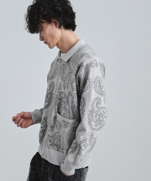 クラシックなペイズリー柄を、モダンなフルジップ仕様で仕上げたニットカーディガン。