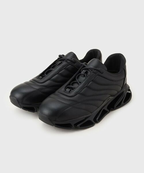 立体的なキルティングデザインのアッパーに、未来的で構築的なボリュームソールを融合させた、存在感のあるレースアップシューズ。