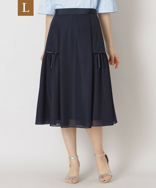 軽やかで透け感のあるトリコット素材を使用し、脇に切り替えとギャザーを施したボリューム感のあるスカートです。デザインのアクセントに切り替え位置にはリボンをあしらっています。