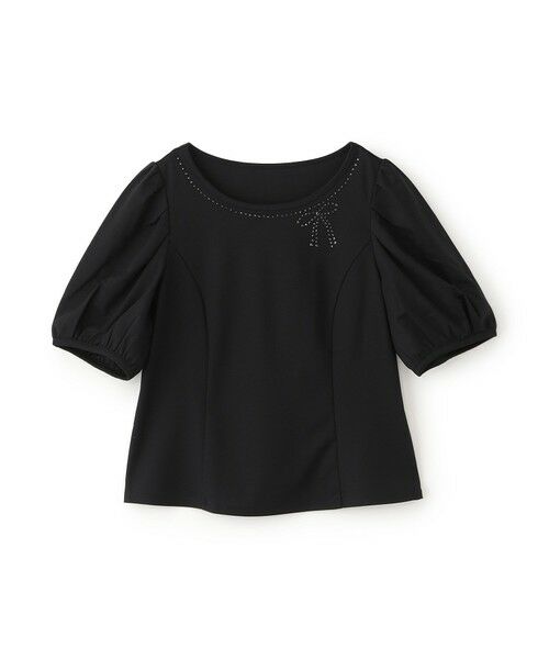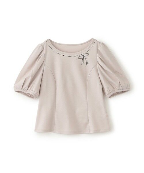 【L】リボンネック プルオーバーカットソーこちらの商品はラージサイズです。【素材】ハイゲージで編んでいるため、織物のようなきめ細やかな表情をしています。捲縮エステルを使用することで、伸縮のある生地になっています。加工では光沢を引き出すためシルケットとガス焼きを施し、毛羽を極限までカットしてドレープのきいた伸縮性のあるファブリックに仕上げています。【デザイン・コーディネートポイント】襟元にきらめくホットフィットをあしらった、リボンモチーフが印象的なトップスです。袖はギャザーパフとカフスで仕上げ、TO BE CHICらしい華やかさと可愛らしさをプラスしています。※この商品はサンプルでの撮影を行っています。実際の商品とイメージ、仕様が異なる場合がございます。